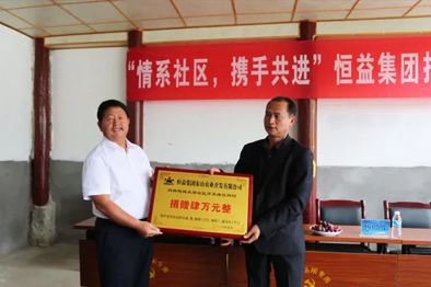 2018年6月1日,為增進(jìn)社區(qū)發(fā)展,提升社區(qū)公共場(chǎng)所相關(guān)配套設(shè)施,恒益集團(tuán)向騰越鎮(zhèn)玉璧社區(qū)芹菜塘自然村捐贈(zèng)4萬元;