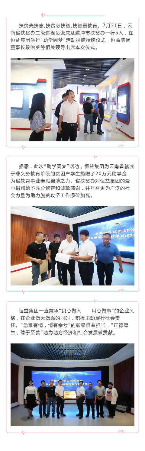 恒益集團捐資助學 情系教育 來源: 瀏覽量:7354 日期:2020-08-03 分享到: 上一篇:熱烈祝賀云南保山恒益實業集團榮獲“2020年度云南省非公企業100強”殊榮 下一篇:恒益集團組織召開內部借款管理辦法實施培訓暨全面預算信息化項目啟動會