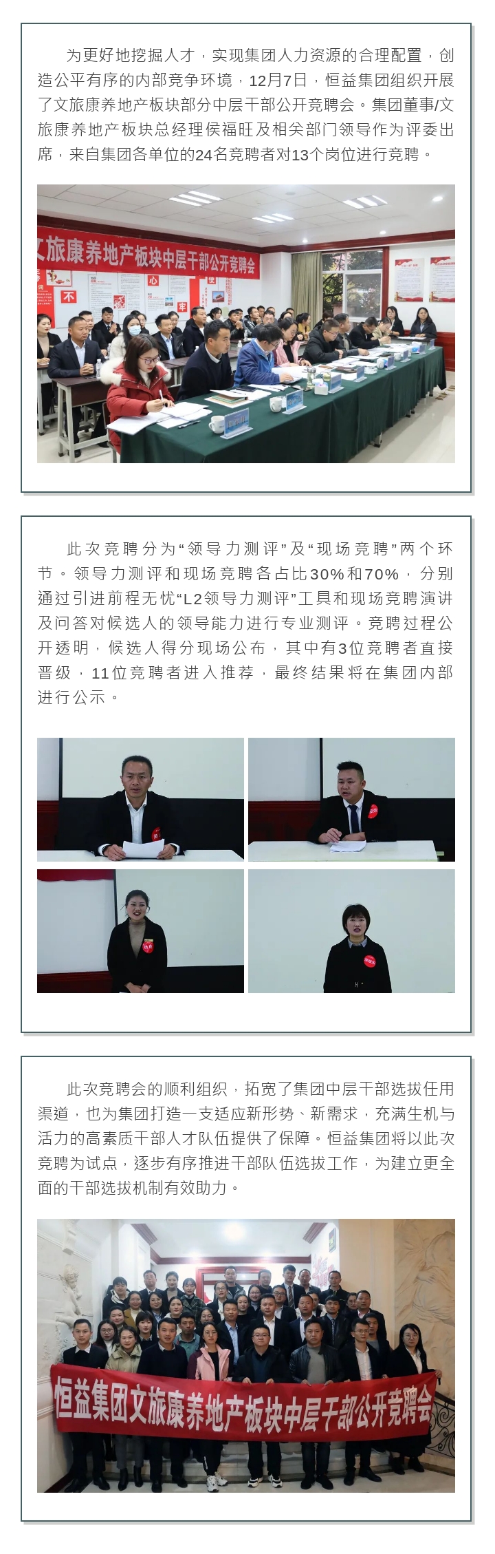 恒益集團(tuán)文旅康養(yǎng)地產(chǎn)板塊部分中層干部公開競(jìng)聘會(huì)議順利召開 來(lái)源: 瀏覽量:6417 日期:2021-12-08 分享到: 上一篇:恒益集團(tuán)第二屆董事會(huì)第四次會(huì)議舉行 下一篇:恒益集團(tuán)景秀東山項(xiàng)目品鑒會(huì)成功舉辦