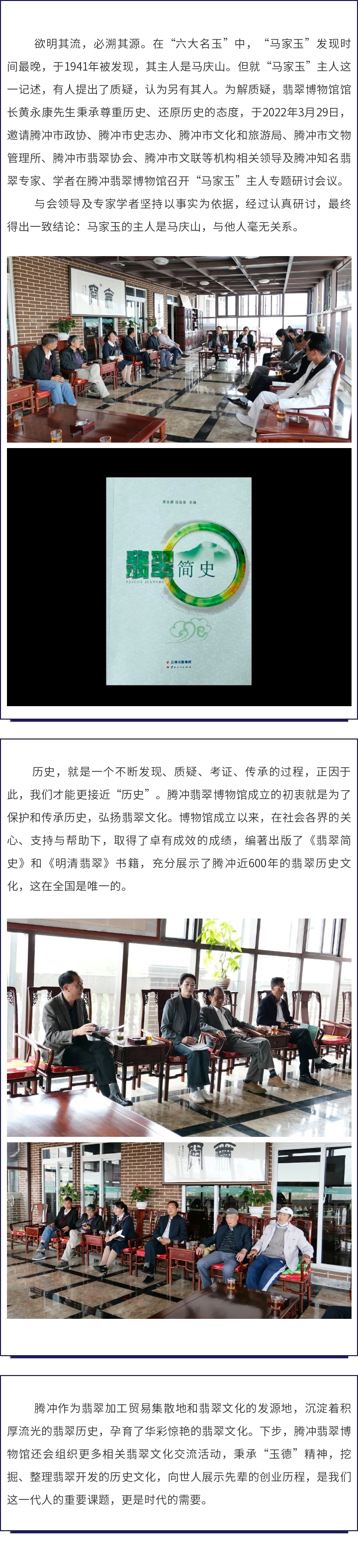 欲明其流,必溯其源——騰沖翡翠博物館組織召開“馬玉石”專題研討會 來源: 瀏覽量:5846 日期:2022-04-01 分享到: 上一篇:新時代,新經濟,新機遇——恒益集團首期經營管理實戰培訓 下一篇:恒益集團三家公司榮獲紅十字會表彰