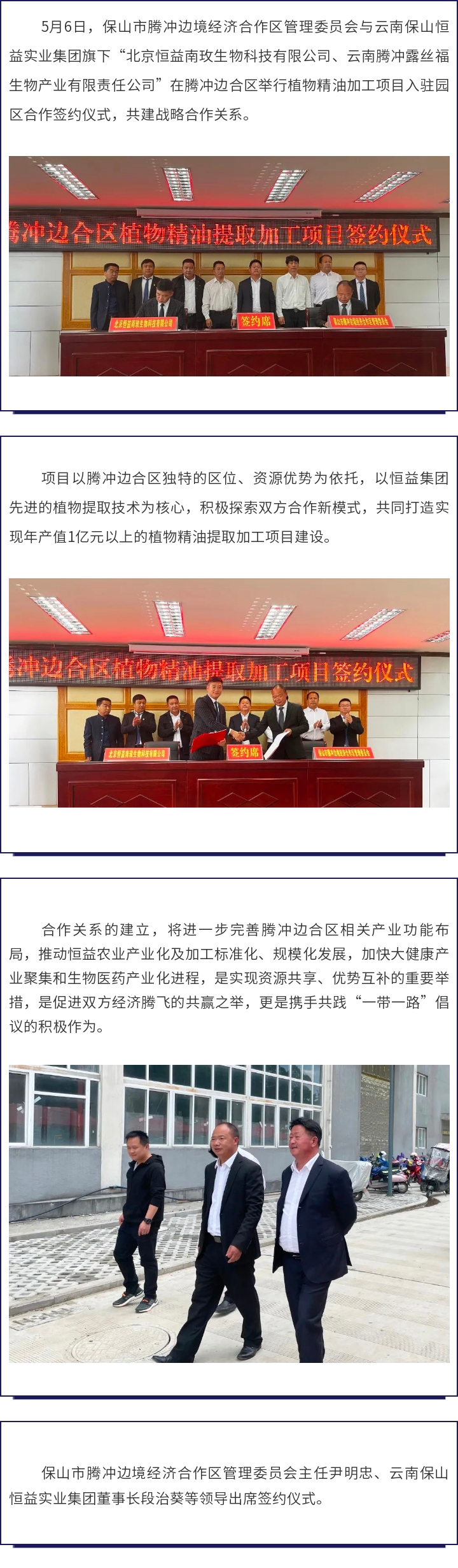 保山市騰沖邊境經濟合作區管理委員會與云南保山恒益實業集團簽訂項目合作協議 來源: 瀏覽量:6027 日期:2022-05-07 分享到: 上一篇:奮力拼搏展風采,攜手同心創佳績 下一篇:博學于文,約之以禮——恒益集團組織“國賓禮儀”主題專場培訓