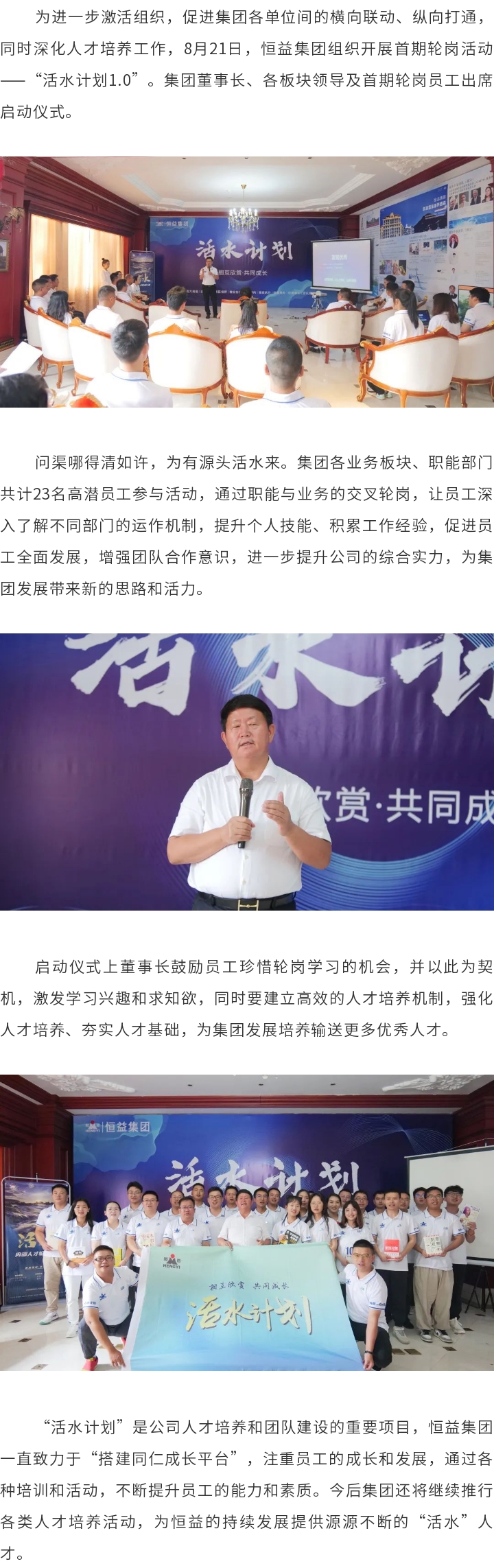 恒益集團組織開展輪崗項目“活水計劃1.0” 來源: 瀏覽量:4360 日期:2023-08-22 分享到: 上一篇:喜訊│恒益集團榮獲“尊師重教先進集體”稱號 下一篇:關于公開騰沖縣固東鐵窯山鐵礦廠礦山開采項目水土保持設施自主驗收情況的通告