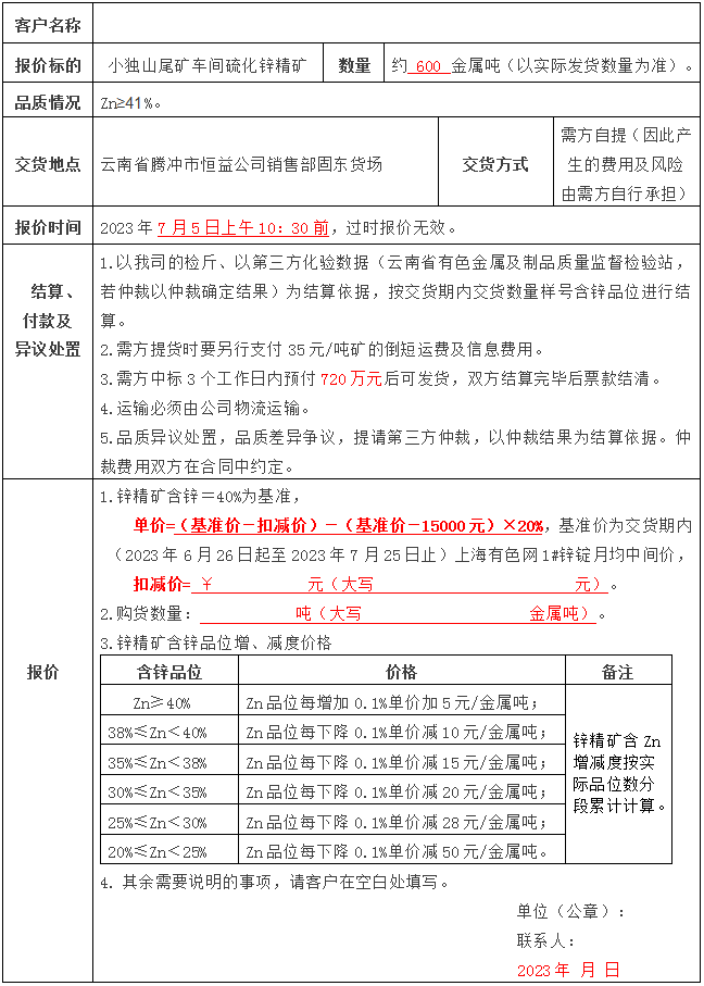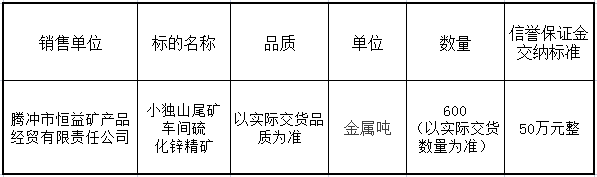 騰沖市恒益礦產(chǎn)品經(jīng)貿(mào)有限責(zé)任公司關(guān)于鋅精礦競價(jià)銷售公告(202305)號