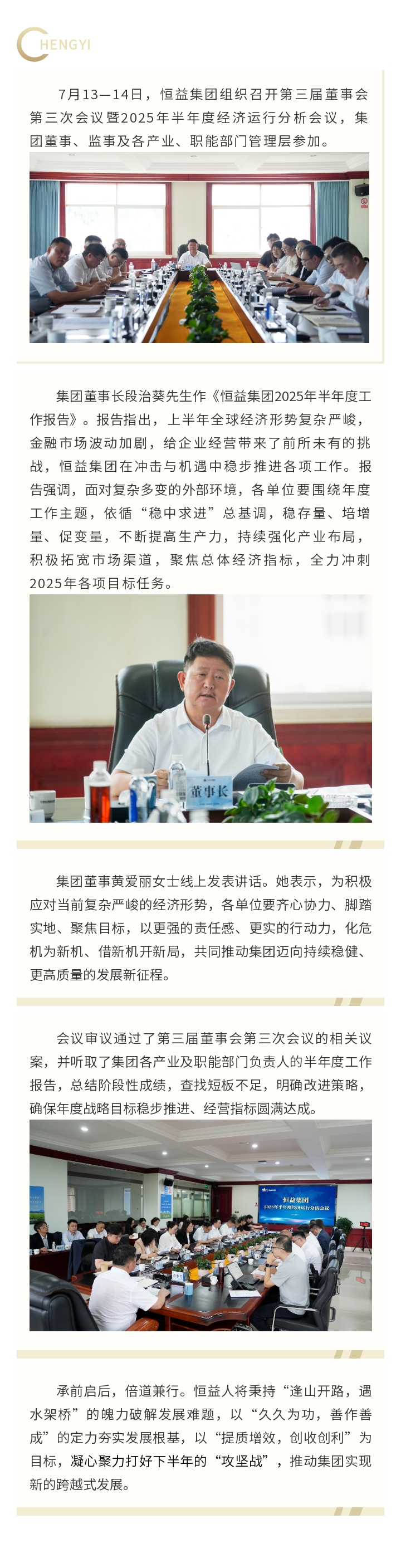 恒益集團(tuán)召開第三屆董事會(huì)第三次會(huì)議暨2025年半年度經(jīng)濟(jì)運(yùn)行分析會(huì)議 來源: 瀏覽量:1635 日期:2025-07-14 分享到: 上一篇:恒益集團(tuán)2025屆“益幟力”管培生集訓(xùn)開營啦! 下一篇:北緯25°的清涼約定~騰沖東山草原·云端19℃夏