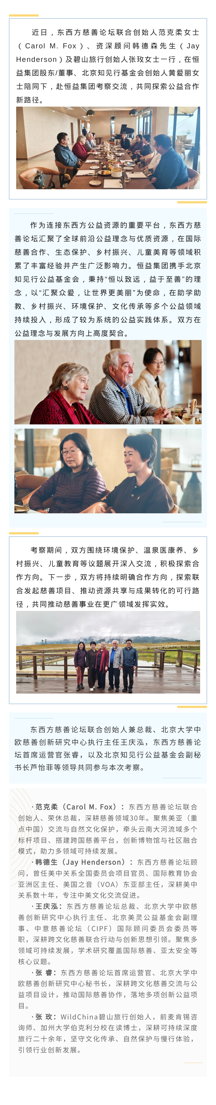東西方慈善論壇聯合創始人一行到訪恒益集團 共探公益合作新路徑 來源: 瀏覽量:271 日期:2025-11-14 分享到: 上一篇:恒益集團“薪火計劃3.0”視頻創意大賽公開評審圓滿落幕 以創意賦能產品傳播 下一篇:北京知見行公益基金會獲評“3A級社會組織”